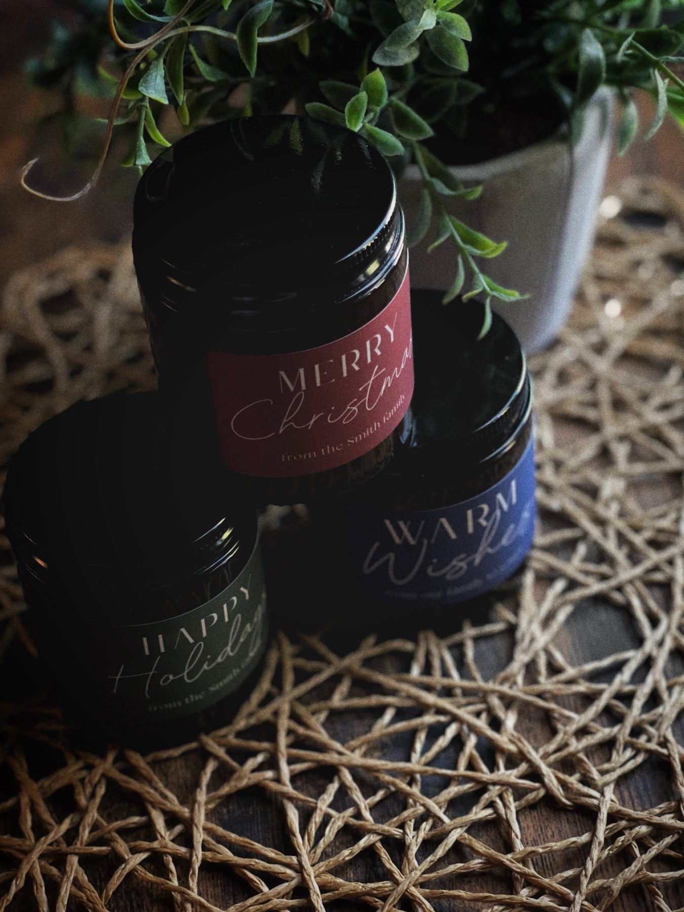 Holiday Trio: Includes ONE 3oz Gold Tin Candle in each of these scents: Christmas Tree, Cozy Cinnamon, Snow Moss